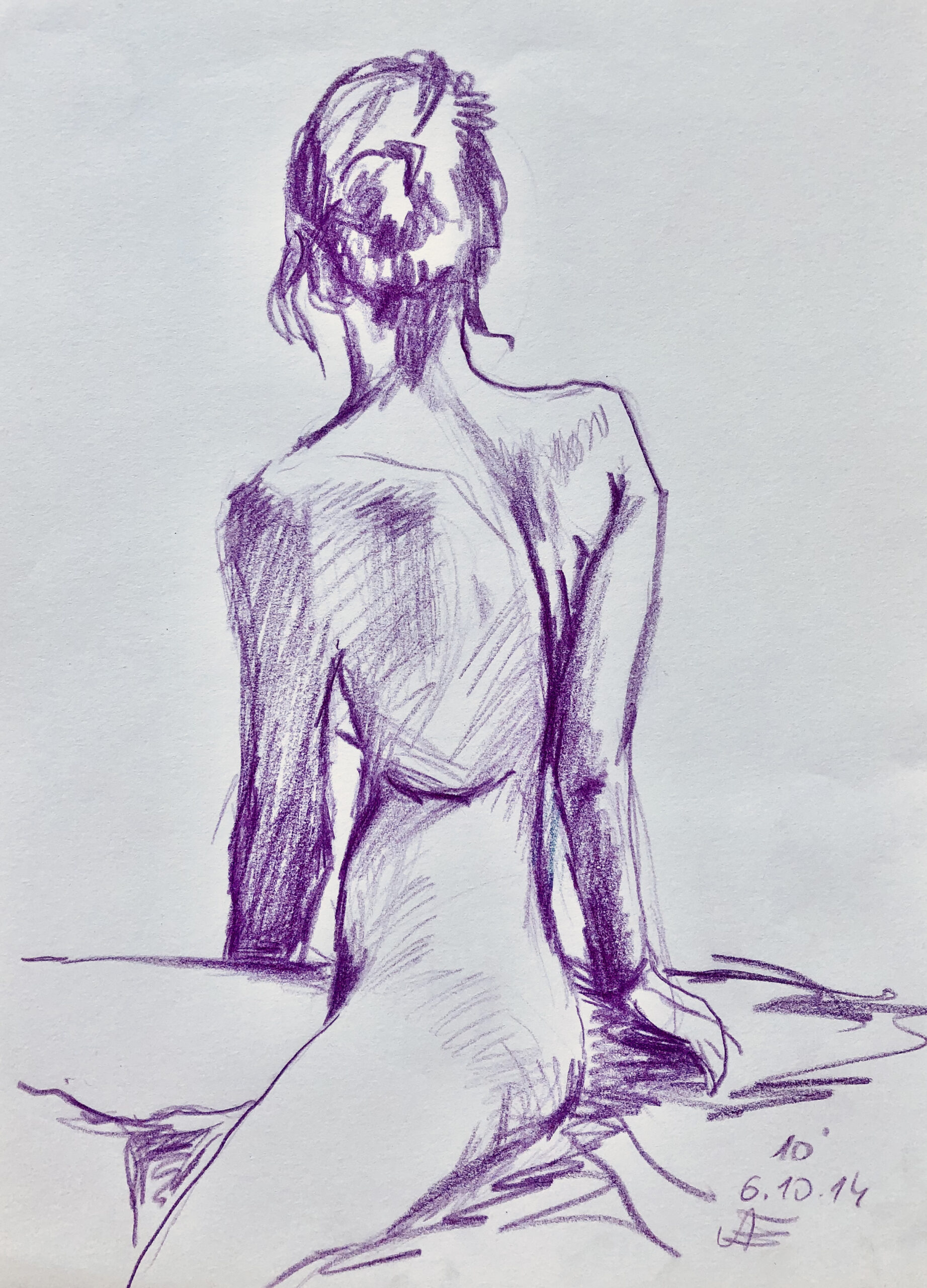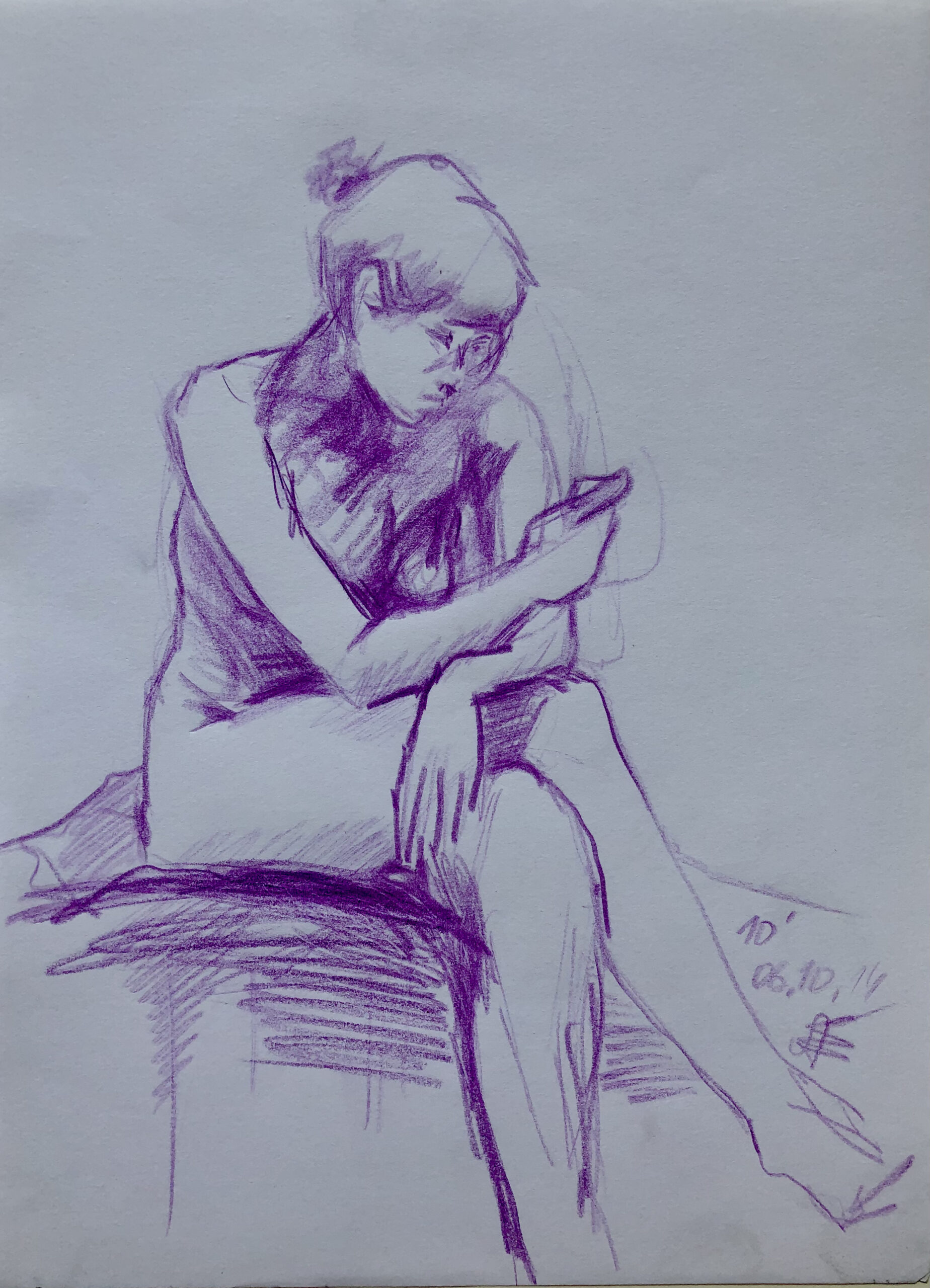 Pastellstift (lila) auf Papier 21×28