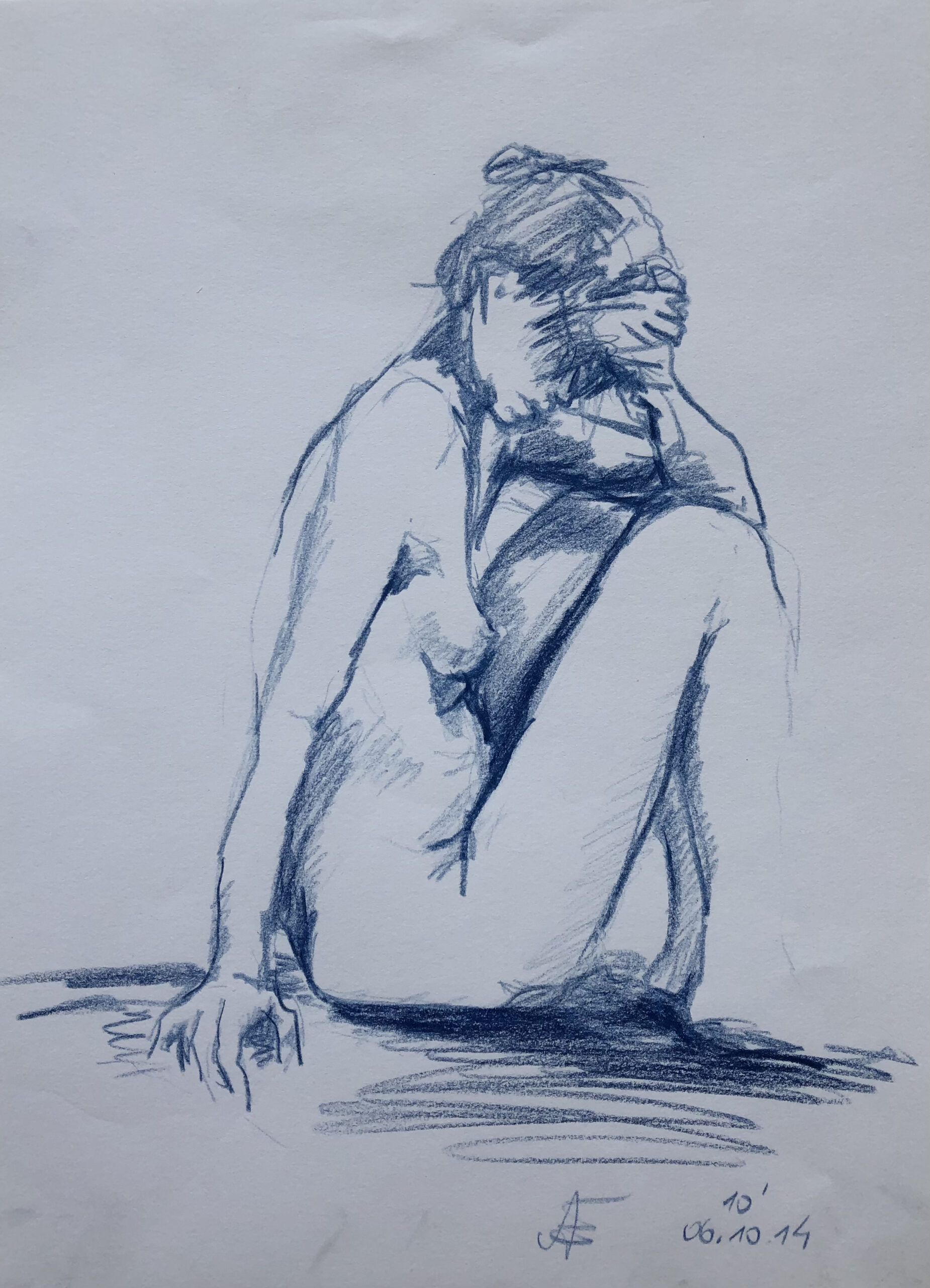 Pastellstift (dunkelblau) auf Papier 21×28
